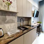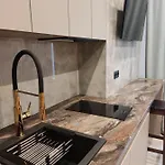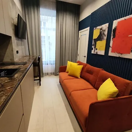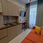 Eine komplette Küche bietet eine Mikrowelle, eine Kaffee-/Teemaschine und Küchenutensilien an. Für einen bequemen und entspannenden Aufenthalt im Apartment stehen den Gästen Ausstattung zur Kaffee- & Teezubereitung zur Verfügung. Das Restaurant Stargorod bietet europäische Speisen an und liegt in einer 5 Gehminuten Entfernung von der Unterkunft. Die Unterkunft ist nur wenige Gehminuten entfernt von der Bushaltestelle Rus'ka.